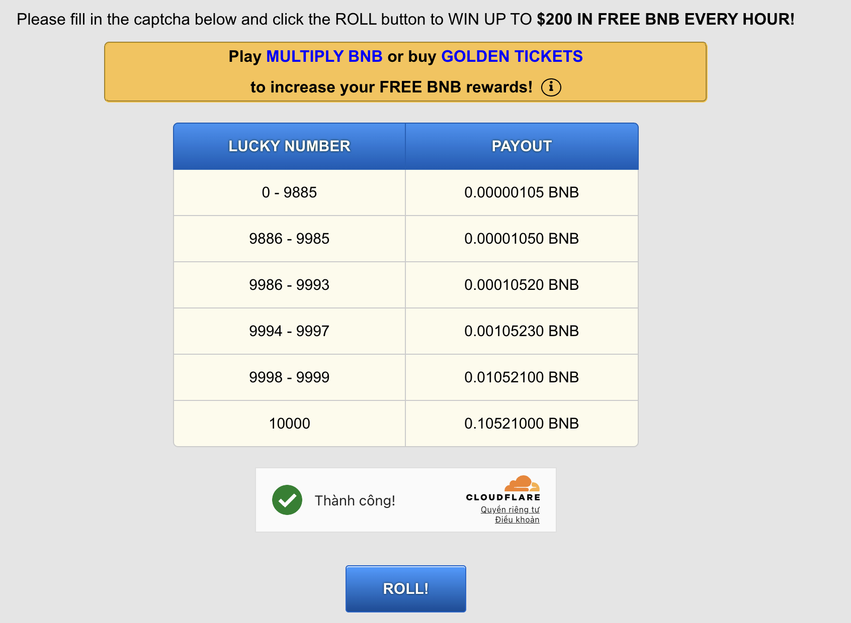 - - Выигрывайте каждый час от нескольких BNB до джекпота в размере 200 долларов США.
